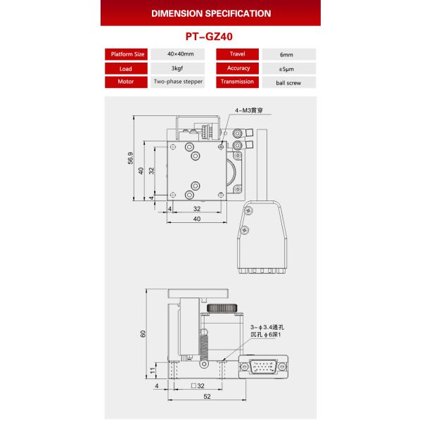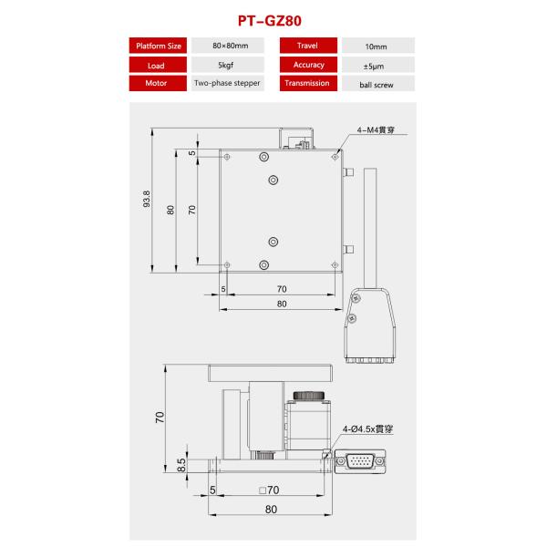 | Mechanical Specification | Platform Size | 40×40mm | 60×60mm | 80×80mm | |